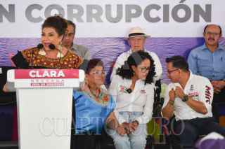 CIUDAD DE MÉXICO, 18MAYO2024.- Simpatizantes durante el mitin de Clara Brugada, candidata a la Jefatura de Gobierno por la coalición "Sigamos Haciendo Historia" quién presentó el proyecto de gobierno "Por un gobierno de derechos humanos y sin corrupción" en el kiosco de Huipulco. FOTO: MARIO JASSO/CUARTOSCURO.COM