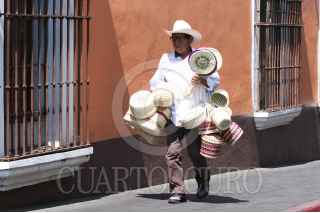 CUERNAVACA, MORELOS, 18MAYO2024.- Vida cotidiana en la calle Hidalgo del centro histórico de la capital, un hombre vende artesanías hechas de palma. FOTO: MARGARITO PÉREZ RETANA/CUARTOSCURO.COM