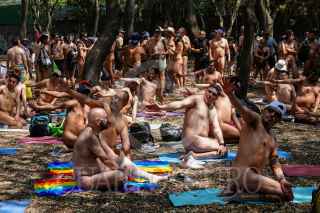 CIUDAD DE MÉXICO, 18MAYO2024.- Por segundo año consecutivo, integrantes de la comunidad nudista en la capital del país se dieron cita en el Parque de la Amistad México-Azerbaiyán, en el Bosque de Chapultepec, para conmemorar el Día al Desnudo. La iniciativa busca visibilidad al nudismo como práctica, filosofía y movimiento social, así como generar un diálogo de reflexión sobre la relación con nuestro cuerpo y los beneficios de normalizar la desnudez. Entre las actividades se encontraron clases de yoga, picnic, baile, masajes y bodypainting. FOTO: GALO CAÑAS/CUARTOSCURO.COM
