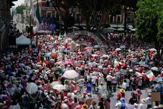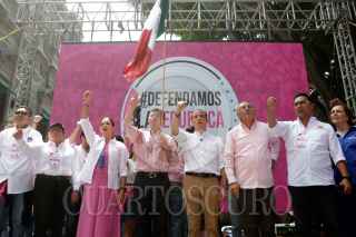 PUEBLA, PUEBLA, 19MAYO2024.- Cientos de poblanos participaron en la marcha de la Marea Rosa, la cual salió del Paseo Bravo para terminar en el zócalo de Puebla. 2024. En la movilización se dejo hizo presente Eduardo Rivera, candidato a gobernador por la coalición Fuerza y Corazón por México, y Mario Riestra, candidato a la alcaldía por la mismas fuerzas políticas. FOTO: MIREYA NOVO/ CUARTOSCURO.COM