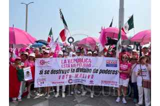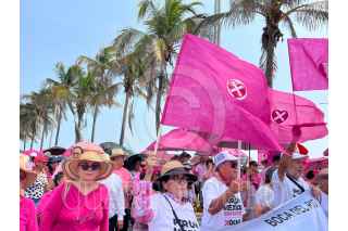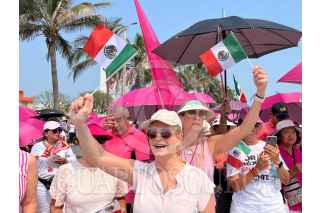 BOCA DEL RIO, VERACRUZ, 19MAYO2024.- La mañana de este domingo, miles de personas se reunieron para participar en la Marcha Rosa por la Democracia, en Veracruz iniciaron en el asta bandera para realizar un recorrido por el boulevard Manuel Ávila Camacho en dirección a Boca del Río. FOTO: VICTORIA RAZO/CUARTOSCURO.COM