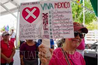 CANCÚN, QUINTANA ROO, 19MAYO2024.- Cientos de cancunenses marcharon en favor de la candidata Xóchitl Gálvez, en el marco de la manifestación a nivel nacional denominada "Defendamos la República" o también conocida como Matea Rosa. FOTO: ELIZABETH RUIZ/CUARTOSCURO.COM.