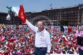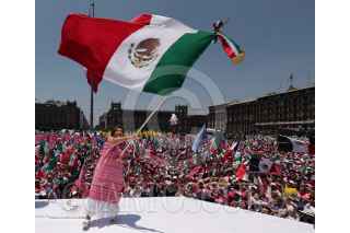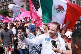 CIUDAD DE MÉXICO, 19MAYO2024.- Los candidatos de la coalición "Fuerza y Corazón por México"; Xóchitl Gálvez, Presidencia de la República, y Santiago Taboada, a la Jefatura de Gobierno, encabezaron el mitin "Defendamos la República" en el Zócalo. Ambos candidatos firmaron lo que llamaron "Manifiesto ciudadano par una nueva República". FOTO: PRENSA FUERZA Y CORAZÓN POR MÉXICO/CUARTOSCURO.COM