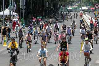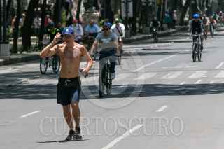CIUDAD DE MÉXICO, 19MAYO2024.- Se cumplen 14 años se cumplieron del Paseo Ciclista, en el cual familias pasean en bicicleta o patines, aunque algunos prefieren trotar, esto a pesa del intenso calor que se ha dejado sentir en capital. FOTO: MOISÉS PABLO/CUARTOSCURO.COM
