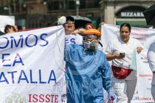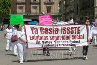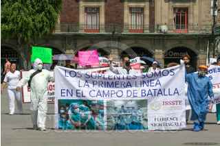CIUDAD DE MÉXICO, 20MAYO2024.- Enfermeras y enfermeros suplentes del ISSSTE marcharon en el Zócalo para exigir la base laboral que las autoridades les habían prometido durante la pandemia, exigieron el Presidente de México que escuche sus demandas. FOTO: MOISÉS PABLO/CUARTOSCURO.COM