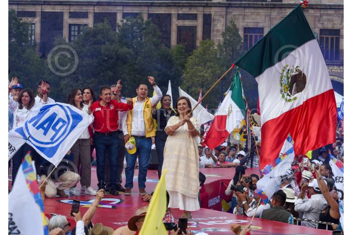 TOLUCA, ESTADO DE MÉXICO, 20MAYO2024.- Xóchitl Gálvez candidata a la Presidencia por la Coalición Fuerza y Corazón por México sostuvo un encuentro con la militancia mexiquense priista, panista y perredista en la Plaza de los Mártires en la ciudad de Toluca. FOTO: CRISANTA ESPINOSA AGUILAR /CUARTOSCURO.COM