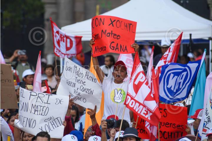 TOLUCA, ESTADO DE MÉXICO, 20MAYO2024.- Xóchitl Gálvez candidata a la Presidencia por la Coalición Fuerza y Corazón por México sostuvo un encuentro con la militancia mexiquense priista, panista y perredista en la Plaza de los Mártires en la ciudad de Toluca. FOTO: CRISANTA ESPINOSA AGUILAR /CUARTOSCURO.COM