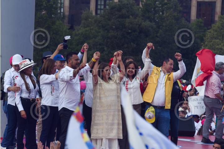 TOLUCA, ESTADO DE MÉXICO, 20MAYO2024.- Xóchitl Gálvez candidata a la Presidencia por la Coalición Fuerza y Corazón por México sostuvo un encuentro con la militancia mexiquense priista, panista y perredista en la Plaza de los Mártires en la ciudad de Toluca. FOTO: CRISANTA ESPINOSA AGUILAR /CUARTOSCURO.COM