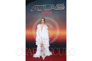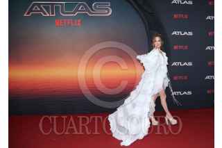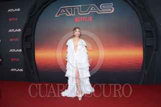 CIUDAD DE MÉXICO, 21MAYO2024. Jennifer López atiende a medios de comunicación durante la alfombra roja de la película de acción y ciencia ficción “Atlas” de la plataforma Netflix, previo a su estreno. FOTO: EDGAR NEGRETE LIRA/CUARTOSCURO.COM