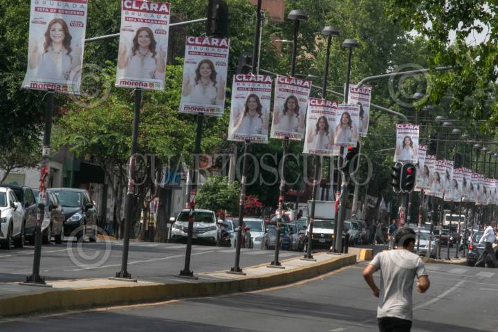 CIUDAD DE MÉXICO, 22MAYO2024.- A poco días de acabar las campañas electorales continúa la saturación de propaganda electoral, mucha de ella hecha de plástico y colocada en inmobiliario publico. A pesar de que la ley establece que el partido que la coloque debe quitarla un día después de las elecciones la mayoría de las veces no sucede tal cosa. Por la ciudad es difícil encontrar un solo rincón en donde no se observe la colocación de esta publicidad electoral que en unos días se convertirá en basura electoral. FOTO: MOISÉS PABLO//CUARTOSCURO.COM