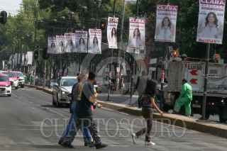 CIUDAD DE MÉXICO, 22MAYO2024.- A poco días de acabar las campañas electorales continúa la saturación de propaganda electoral, mucha de ella hecha de plástico y colocada en inmobiliario publico. A pesar de que la ley establece que el partido que la coloque debe quitarla un día después de las elecciones la mayoría de las veces no sucede tal cosa. Por la ciudad es difícil encontrar un solo rincón en donde no se observe la colocación de esta publicidad electoral que en unos días se convertirá en basura electoral. FOTO: MOISÉS PABLO//CUARTOSCURO.COM