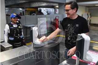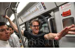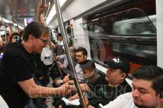 CIUDA DE MÉXICO, 22MAYO2024.- Salomón Chertorivski, candidato a la jefatura de Gobierno por Movimiento Ciudadano, realizó un recorrido en el Sistema de Transporte Colectivo (STC) Metro de la estación Zapata a Tláhuac, en donde compartió con usuarios sus propuestas de gobierno en materia de movilidad. FOTO: MARIO JASSO/CUARTOSCURO.COM