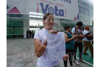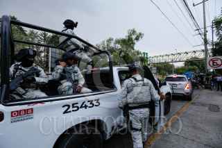 TOLUCA, ESTADO DE MÉXICO, 22MAYO2024.- Teresa Reyes Loza candidata a la presidencia municipal de Santo Tomás de los Plátanos por MORENA presentó ante el Consejo General del IEEM su renuncia como candidata por razones personales, la candidata es escoltada por elementos de la Guardia Nacional y de la Policía Estatal. FOTO: CRISANTA ESPINOSA AGUILAR /CUARTOSCURO.COM