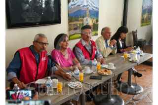 TOLUCA, ESTADO DE MÉXICO, 22MAYO2024.- Juan Carlos Padilla, acompañado a Carlos Navarrete Ruiz del Frente Cívico Nacional acompañado por integrantes de otras agrupaciones civiles, como Jorge Federico de la Vega, hicieron un llamado a la ciudadanía para que piense muy bien su voto el próximo 2 de junio y piensen en el futuro del país, sobre todo a los de votarán por Movimiento Ciudadano. FOTO: CRISANTA ESPINOSA AGUILAR /CUARTOSCURO.COM