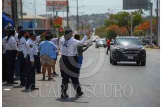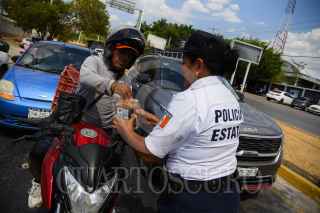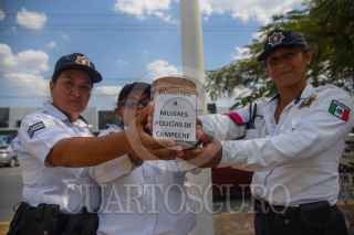 CAMPECHE, CAMPECHE, 22MAYO2024.- Elementos de la Policía Estatal de Campeche; quienes se encuentran en manifestación desde hace 66 días, exigiendo la destitución de la secretaria de seguridad Marcela Muñoz, realizaron un boteo en las afueras de la secretaria de seguridad pública para obtener ingresos. Los agentes denunciaron que esta medida fue necesaria debido a que sus salarios han sido retenidos y llevan dos quincenas sin recibir pago. FOTO: MICHAEL BALAM/CUARTOSCURO.COM