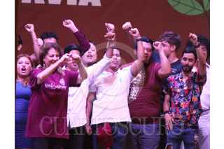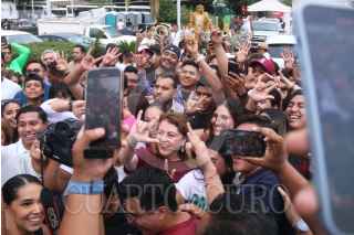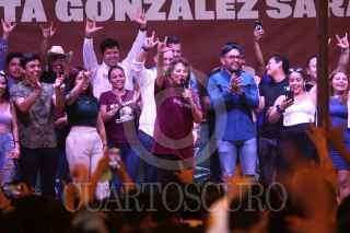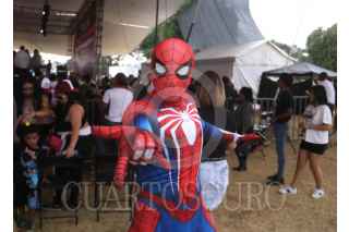 CUERNAVACA, MORELOS, 22MAYO2024.- Margarita González Saravia, candidata a la gubernatura del estado por la coalición "Sigamos Haciendo Historia en Morelos" (MORENA, PVEM, PT) participo en el Festival de las Juventudes, evento que se realizó para festejar a los estudiantes. En la imagen, un asistente al mitin disfrazada de super héroe. FOTO: MARGARITO PÉREZ RETANA/CUARTOSCURO.COM