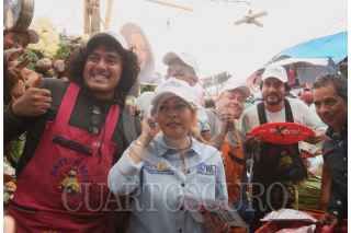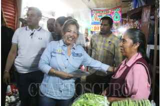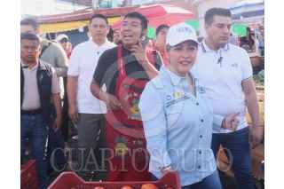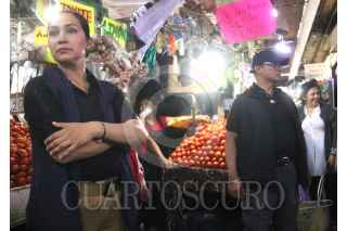 CUERNAVACA, MORELOS, 23MAYO2024.- Lucia Meza Guzmán, candidata a la gubernatura, por la coalición "Dignidad y seguridad por Morelos. Vamos todos", integrada por Partido Acción Nacional, Partido Revolucionario Institucional, Partido de la Revolución Democrática y el partido local Redes Sociales Progresistas, realizo un recorrido por el mercado Adolfo López Mateos. En la imagen, dos elementos de su equipo de seguridad vigilan el recorrido. FOTO: MARGARITO PÉREZ RETANA/CUARTOSCURO.COM