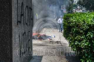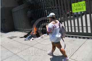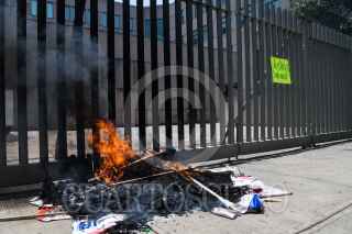 CIUDAD DE MÉXICO, 23MAYO2024.- Maestros de la Coordinadora Nacional de Trabajadores de la Educación (CNTE) se desplazaron del zócalo capitalino al Comité Ejecutivo Nacional (CEN) del PAN en donde quemaron un conjunto de propaganda electoral como protesta en sus exigencias de aumento salarial. FOTO: MARIO JASSO/CUARTOSCURO.COM