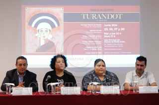 CIUDAD DE MÉXICO, 23MAYO2024.- Carlos Arturo Galván, Tenor, Calaf, Turandot; María Katzarava, directora artística de la Compañía Nacional de Ópera; Marcela Robles, soprano Turandot, e Ignacio García, director de escena Turandot, durante su participación en una conferencia de prensa para anunciar las fechas de presentación de la Ópera Turandot. FOTO: GRACIELA LÓPEZ /CUARTOSCURO.COM