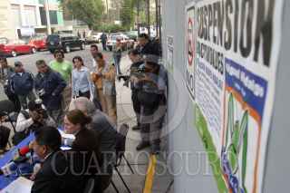 MÉXICO, D.F., 26JULIO2007.- El arquitecto Diego Matthay, La delegada de Miguel Hidalgo, Gabriela Cuevas y Ezequiel Retiz Gutierrez, diputado local, ofrecieron una conferencia de prensa en el predio en el cual el Gobierno del DF pretende construir la Torre Bicentenaria, ahí señalaron que la colonia no cuenta con ese uso de suelo por lo que este proyecto es inviable en esa zona. FOTO: MOISÉS PABLO/CUARTOSCURO.COM