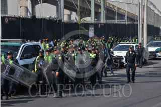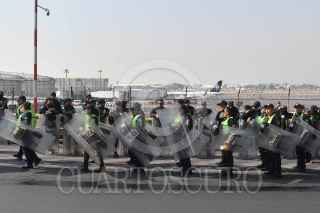 CIUDAD DE MÉXICO, 24MAYO2024.- Elementos de la Secretaria de Seguridad Ciudadana (SSC) resguardan las inmediaciones de la Terminal 1 del Aeropuerto Internacional de la Ciudad de México (AICM) en donde se prevéa llegada de maestros de la Coordinadora Nacional de Trabajadores de la Educación (CNTE) para protestar en exigencia de un aumento salarial. FOTO: MARIO JASSO/CUARTOSCURO.COM