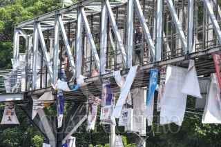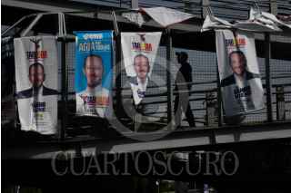 CIUDAD DE MÉXICO, 24MAYO2024.- Propaganda electoral sobre un puente peatonal en Circuito Interior. FOTO: MARIO JASSO/CUARTOSCURO.COM