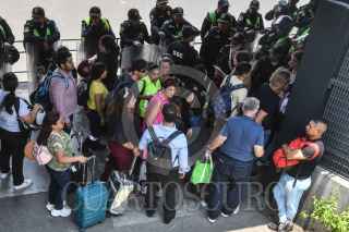 CIUDAD DE MÉXICO, 24MAYO2024.- Usuarios retrasaron su llegada a la terminal 1 del Aeropuerto Internacional de la Ciudad de México (AICM) luego de la protesta que maestros de la Coordinadora Nacional de Trabajadores de la Educación (CNTE) realizaron por más de dos horas. FOTO: MARIO JASSO/CUARTOSCURO.COM