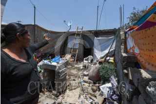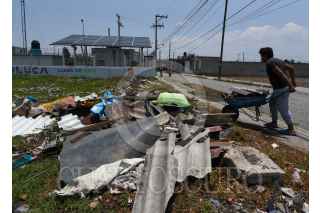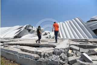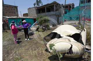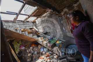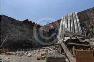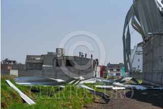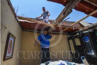 TOLUCA, ESTADO DE MÉXICO, 24MAYO2024.- Después de la tromba que se registró la tarde del jueves en Toluca vecinos del Barrio de San Salvador en la delegación de San Cristóbal a Huichochitlán realizan labores de limpieza, retiran láminas, tinacos, ladrillos y demás cosas que volaron por el paso de “la cola de agua”, quienes continuaban sin luz, al mismo tiempo también revisan una bodega que Santiago Miltepec que fue pérdida total. FOTO: CRISANTA ESPINOSA AGUILAR /CUARTOSCURO.COM