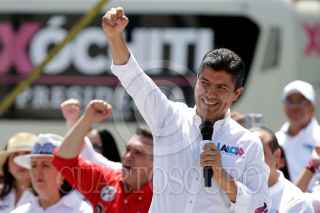 PUEBLA, PUEBLA, 25MAYO2024.- La candidata la presidencia de la República por la coalición Fuerza y Corazón Por México, Xóchitl Gálvez, acompañó el cierre de campaña de Eduardo Rivera, candidato a la gubernatura por la coalición Mejor Rumbo Para Puebla, y Mario Riestra, candidato común del PAN, PRI, PRD y PSI a la alcaldía de Puebla. FOTO: MIREYA NOVO/ CUARTOSCURO.COM