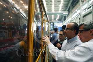 MONTERREY, NUEVO LEON, 26JULIO2007.-El presidente Felipe Calderon Hinojosa acompañado del Secretario de Economia Eduardo Sojo, el gobernador de la entidad, Jose Natividad Gonzales Paras e integrantes de Toyota durante el recorrido en la ensambladora. FOTO: ALFREDO GUERRERO/CUARTOSCURO.COM
