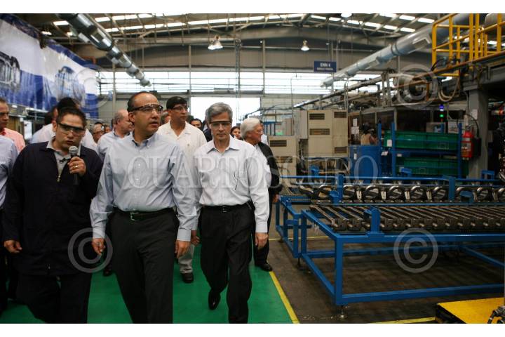 MONTERREY, NUEVO LEON, 26JULIO2007.-El presidente Felipe Calderon Hinojosa acompañado del Secretario de Economia Eduardo Sojo, el gobernador de la entidad, Jose Natividad Gonzales Paras e integrantes de Toyota durante el recorrido en la ensambladora. FOTO: ALFREDO GUERRERO/CUARTOSCURO.COM