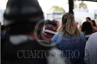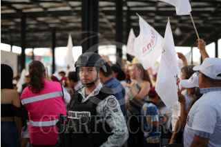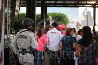 CELAYA, GUANAJUATO, 25MAYO2024.- Elementos de la Guardia Nacional custodian a candidatas y candidatos de Movimiento de Regeneración Nacional (MORENA) durante sus campañas. La entidad es una de las mayores generadoras de violencia a nivel federal. FOTO: DIEGO COSTA/CUARTOSCURO.COM