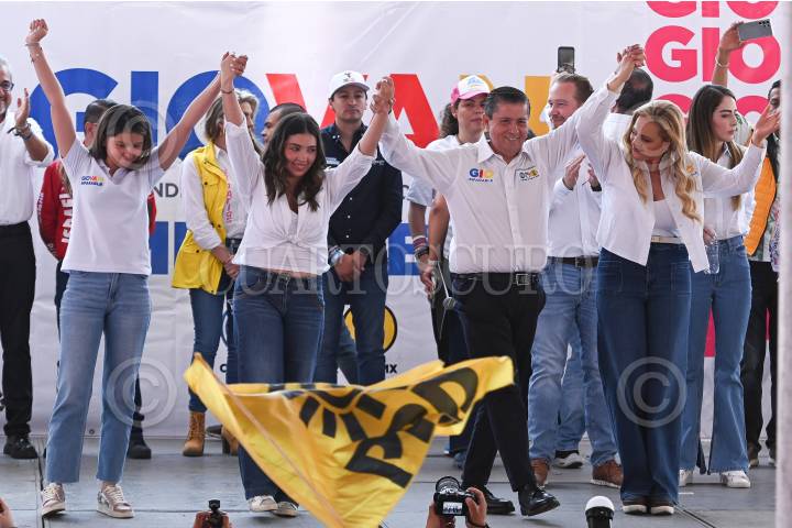 CIUDAD DE MÉXICO, 26MAYO2024.- La familia del candidato perredista a la alcaldía de Coyoacán, Giovanni Gutiérrez, lo acompaña durante uno de sus cierres de campaña. FOTO: DANIEL AUGUSTO/ CUARTOSCURO.COM