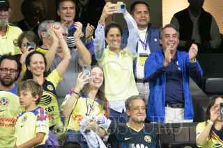 CIUDAD DE MÉXICO, 26MAYO2024.- Sharon Fastlicht y Emilio Azcárraga Jean festejan en las gradas el Bicampeonato del América de la Liga MX. FOTO: MOISÉS PABLO/CUARTOSCURO.COM