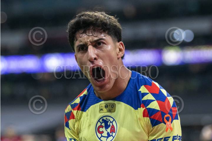 CIUDAD DE MÉXICO, 26MAYO2024.- Alejandro Zendejas del América festeja el penal marcado a su favor durante la final contra el Cruz Azul. FOTO: MOISÉS PABLO/CUARTOSCURO.COM