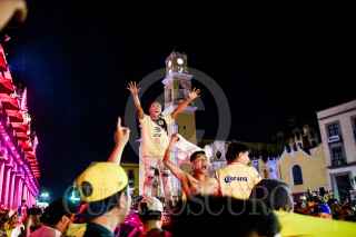 XALAPA VERACRUZ, 27MAYO2024.- Tras la victoria del Club América por el bicampeonato de la liga MX, aficionados americanistas se reúnen en la plaza Sebastián Lerdo en Xalapa para celebrar el triunfo. FOTO: ALBERTO ROA/CUARTOSCURO.COM