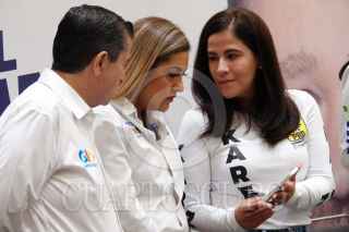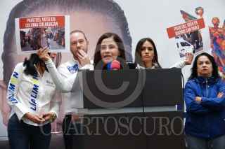 CIUDAD DE MÉXICO, 27MAYO2024.- Lía Limón, candidata a la alcaldía de Álvaro Obregón, y Santiago Taboada, candidato a Jefe de Gobierno, conversaron durante una conferencia de prensa realizada en el Holiday Inn-Mexico Plaza Universidad. FOTO: GRACIELA LÓPEZ /CUARTOSCURO.COM