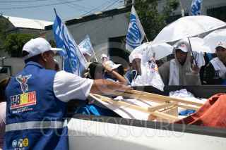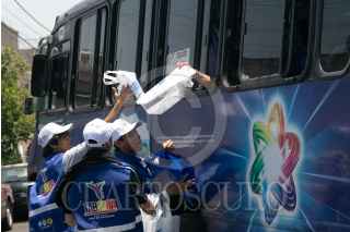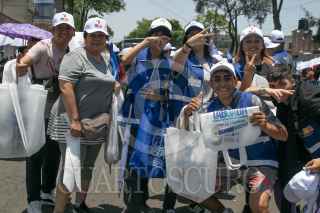 CIUDAD DE MÉXICO, 27MAYO2024.- Simpatizantes de la alianza Fuerza y Corazón por México en la capital reparten bolsas, banderas, camisetas y sombrillas con la imagen o slogan de sus candidatos. FOTO: MOISÉS PABLO/CUARTOSCURO.COM