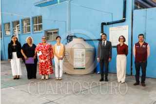 CIUDAD DE MÉXICO- 28MAYO2024.- El jefe del Gobierno de la Ciudad, Martí Batres Guadarrama; encabezó la puesta en marcha de la programa de. captación de agua de lluvia en la escuelita Emiliano Zapata, en Los Pedregales de Coyoacán, en el techo, pusieron un sistema de captación y el agua se iba a una cisterna. FOTO: GOBIERNO DE LA CIUDAD/CUARTOSCURO.COM
