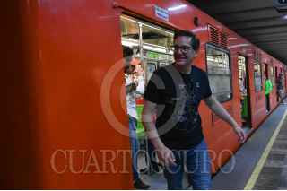 CIUDAD DE MÉXICO, 28MAYO2024. - Salomón Chertorivski, candidato de MC a la jefatura de gobierno, recorrió esta mañana algunas estaciones del STC Metro, donde habló y saludo a los usuarios del transporte público. FOTO: DANIEL AUGUSTO/ CUARTOSCURO.COM