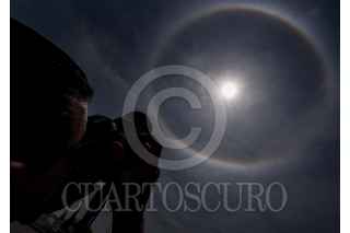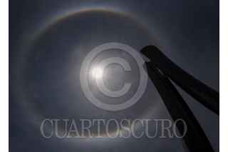 TOLUCA, ESTADO DE MÉXICO, 28MAYO2024.- Este día en la capital mexiquense pudo observarse un fenómeno óptico atmosférico conocido como halo solar, espectáculo que pudo verse en varios estados de la República Mexicana. FOTO: CRISANTA ESPINOSA AGUILAR /CUARTOSCURO.COM