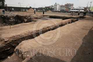 MÉXICO, D.F., 01AGOSTO2007.- Arqueologos del INAH descubrieron un centro las ruinas de un ceremonial de la cultura Mexica en la explanada de la delegacion Iztapalapa. FOTO: IVÁN MENDEZ/CUARTOSCURO.COM