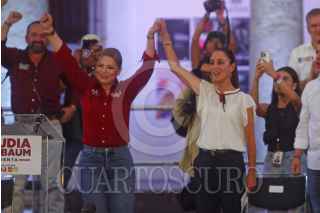 GUADALAJARA, JALISCO. 28MAYO2024.- Claudia Delgadillo candidata de Morena a la gubernatura del estado, cerro campaña el día de hoy, en mitin encabezado por Claudia Sheinbaum, candidata a la presidencia de la republica por la coalición “Sigamos Haciendo Historia” (Morena, PT y PVEM), esto en la explanada del Instituto Cultural Cabañas, a donde se dieron cita miles de simpatizantes. FOTO: FERNANDO CARRANZA GARCIA / CUARTOSCURO.COM
