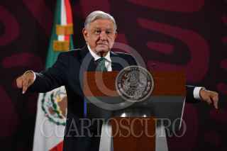 CIUDAD DE MÉXICO, 29MAYO2024.- Andrés Manuel López Obrador, presidente de México, durante su intervención en la conferencia de prensa matutina en Palacio Nacional. FOTO: MARIO JASSO/CUARTOSCURO.COM