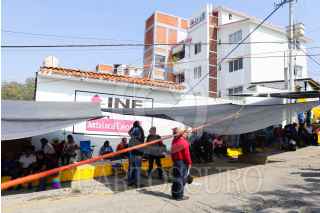 OAXACA, OAXACA, 29MAYO2024.- Esté día integrantes de la Sección 22 de la Coordinadora Nacional de Trabajadores de la Educación iniciaron la toma permanente de la Terminal de Almacenamiento y Despacho de Pemex en Santa María El Tule; de la Junta Local Ejecutiva del Instituto Nacional Electoral; de la delegación del Servicio de Administración Tributaria y paso libre en casetas de cuota. Mediante asamblea estatal el magisterio oaxaqueño acordó mantener el paro indefinido iniciado el pasado 15 de mayo. FOTO; CAROLINA JIMÉNEZ/CUARTOSCURO.COM