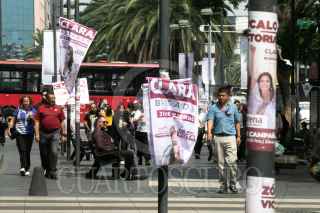 CIUDAD DE MÉXICO, 29MAYO2024.- Avenida Juárez amaneció tapizada de propaganda electoral, esto a un día de que terminen las campañas electorales, y todo estos materiales se convierten en basura, muchos de ellos no será reciclada como lo marca la ley electoral. FOTO: MOISÉS PABLO/CUARTOSCURO.COM