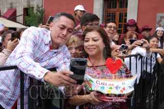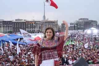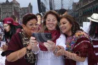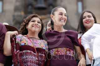 CIUDAD DE MÉXICO, 29MAYO2024.- Clara Brugada, candidata a la jefatura de Gobierno, durante su llegada al cierre de campaña realizado en el zócalo capitalino. FOTO: PRENSA CLARA BRUGADA/CUARTOSCURO.COM