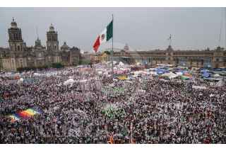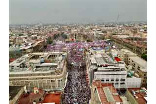 CIUDAD DE MÉXICO, 29MAYO2024.- Miles asistentes acudieron al zócalo capitalino al cierre de campaña de Clara Brugada, candidata a la jefatura de Gobierno, y Claudia Sheinbaum. FOTO: PRENSA CLAUDIA SHEINBAUM/CUARTOSCURO.COM