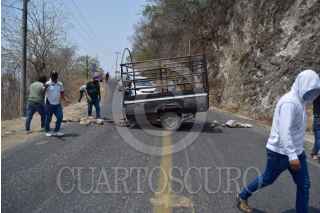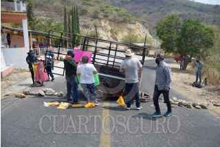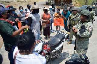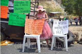 LEONARDO BRAVO, GUERRERO, 30MAYO2014.- Este jueves, un grupo de desplazados del municipio de Leonardo Bravo, protestaron en la entrada de la cabecera municipal, Chichihualco, para exigir el arribo de las autoridades estatales y garantice la seguridad de sus poblados para que ellos puedan regresar. Poco después de las 10:00 de la mañana, unos 50 desplazados, arribaron al punto conocido como "la Ermita" para dar una conferencia de prensa. Los afectados, declararon que desde hace cuatro años tuvieron que dejar sus hogares, con los que mucho sacrificio fueron construyendo durante años, pero la inseguridad que se vive en esa zona a consecuencia de los grupos armados que operan cerca de la zona, los obligó a dejar sus viviendas y su vida en su lugar de origen. FOTO: DASSAEV TÉLLEZ ADAME/CUARTOSCURO.COM