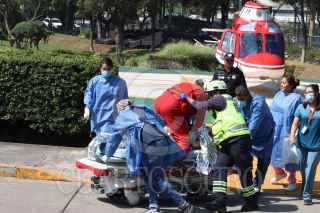 CIUDAD DE MÉXICO, 31MAYO2024.- Traslado de una mujer herida en un helicóptero del proveniente del Estado de México tras choque en la autopista México-Puebla kilómetro 46 entre un auto y un camión. La mujer fue ingresada al hospital Magdalena de las Salinas. FOTO: ROGELIO MORALES/CUARTOSCURO.COM